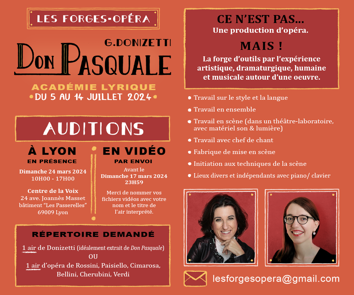 A la suite de ce stage avec Michela Bertagnolli et Chloé Elasmar, vous aurez développé un équilibre subtil entre la perméabilité aux suggestions de la direction musicale, de la technique, de la mise en scène, et l'apport d'une proposition personnelle qui vous permettra de mieux respirer dans votre personnage.